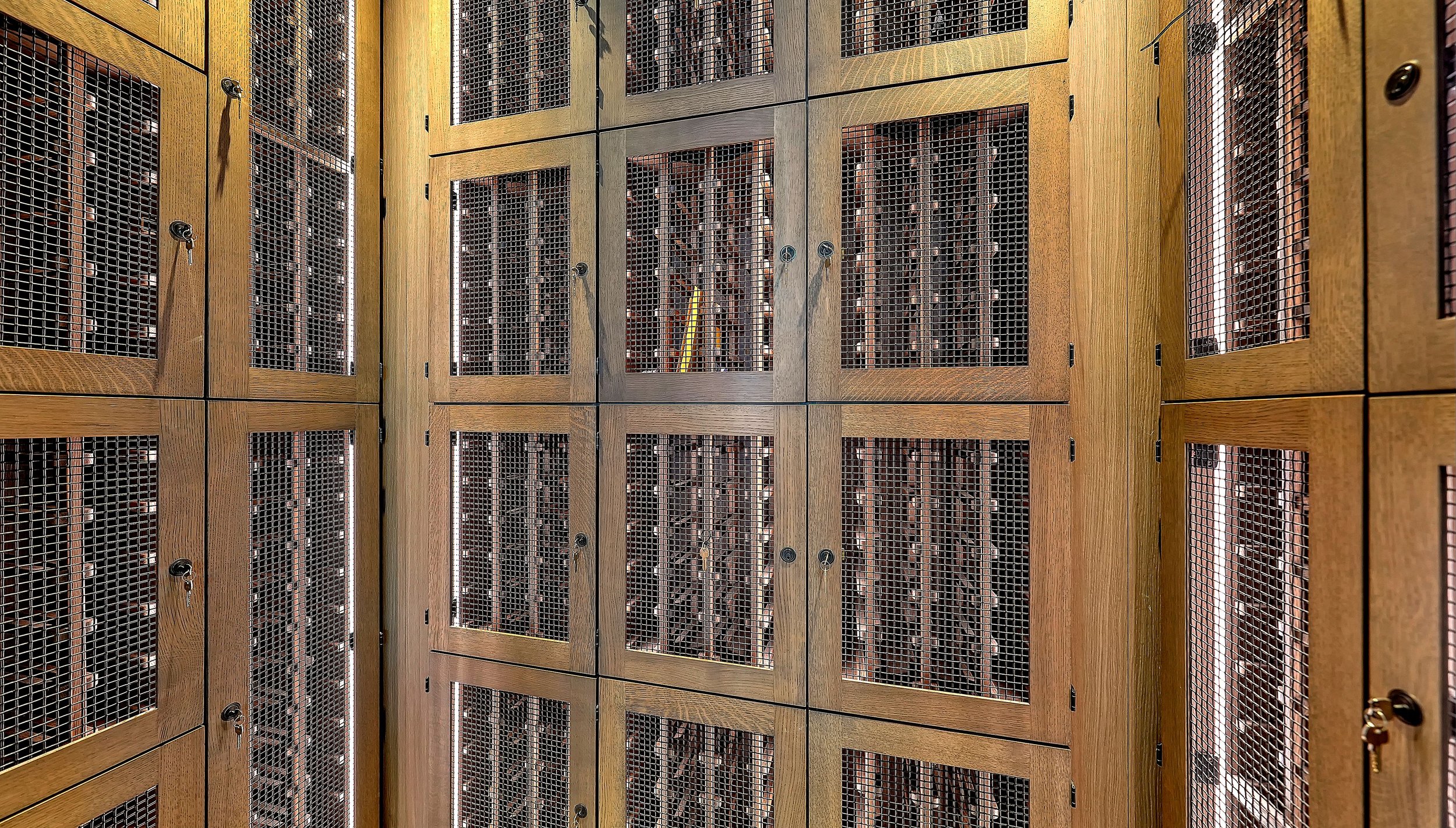 Spacious gathering room for private events, including a Wine Storage Room and elegant waterfall edge bar